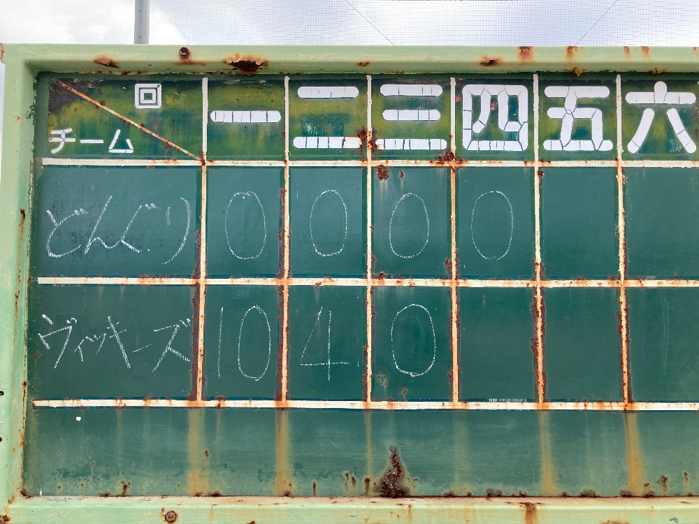 vsどんぐり ◯14-09月になりましたがまだまだ暑い日が続いている中、久しぶりの試合🥵初回からいきなり打線が爆発!打者14人で10得点の猛攻。さらに得点を重ねて14点!新婚のYちゃん、自らのバットで祝砲となるホームラン、ホームラン性の2塁打と大当たり!おめでとう🎉Aちゃん、いつものナイスピッチングで0点に抑えました。お見事でした😃